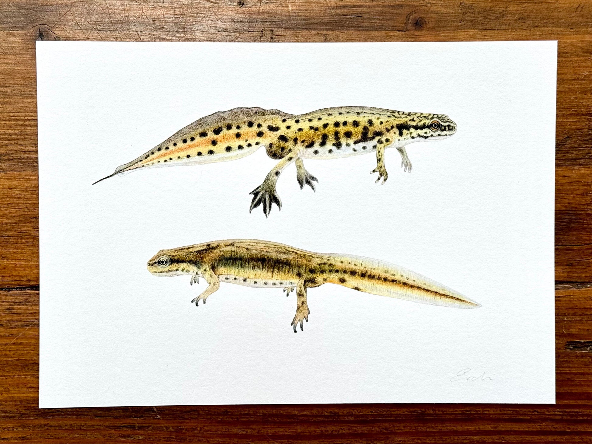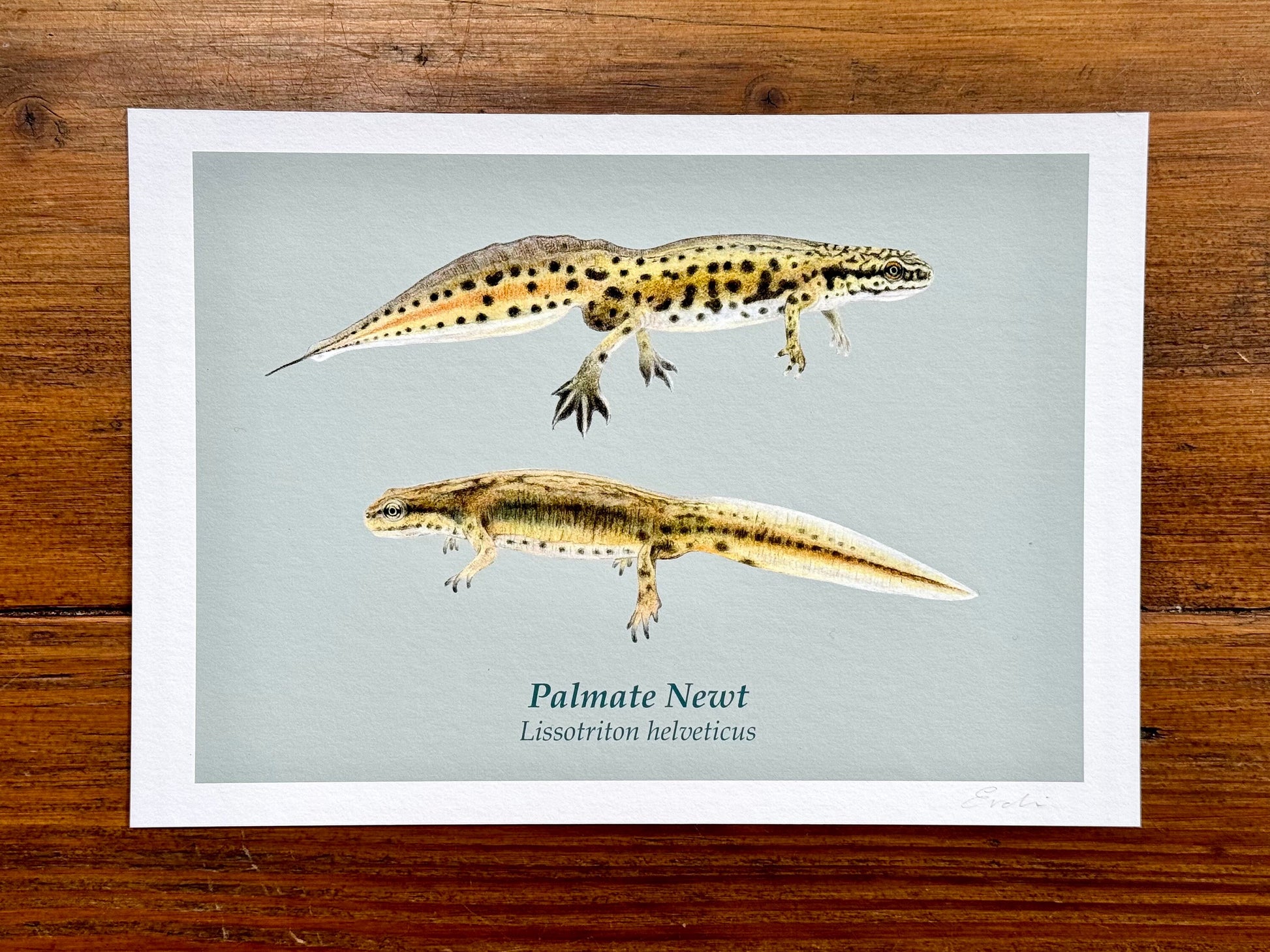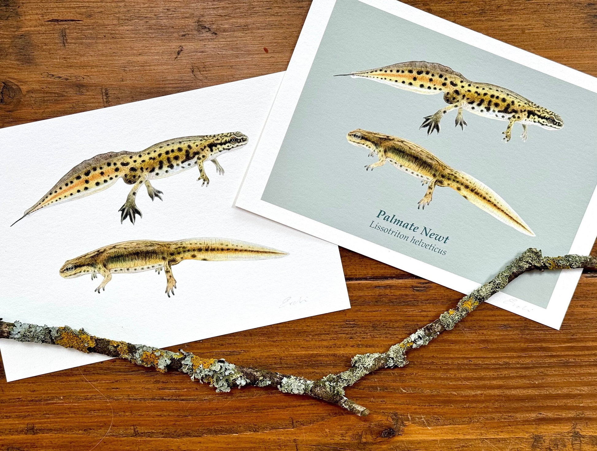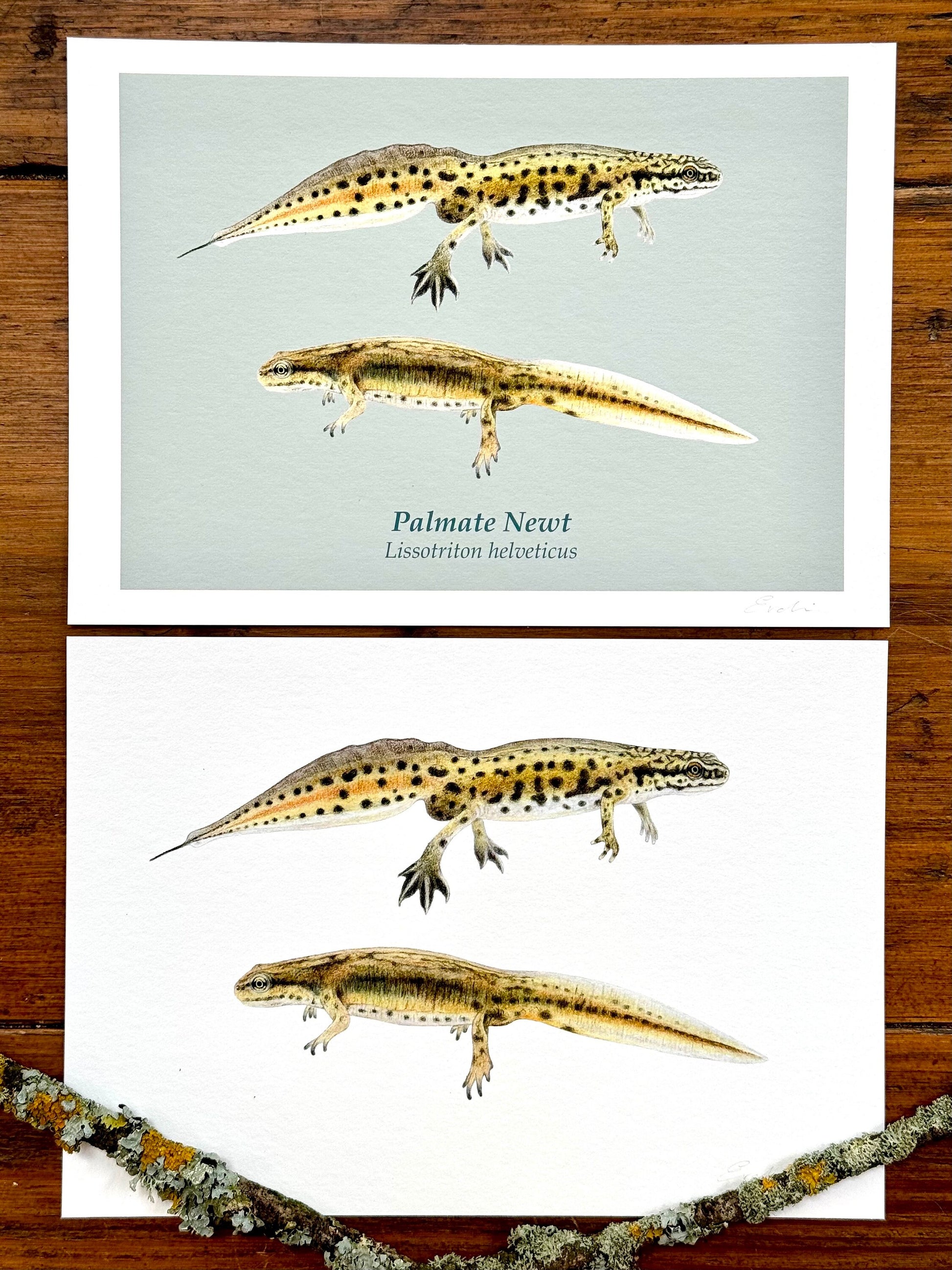 High quality Giclée reproductions (archival digital print) of palmate newt drawings. The original drawings were created in coloured pencil on hot pressed watercolour paper. These prints of the original artwork are created to the highest standards, and are printed on Hahnemühle 350 gsm museum etching paper - 100% Rag Paper with a subtle surface texture. Signed on the front. Please note this is print is unmounted and unframed.