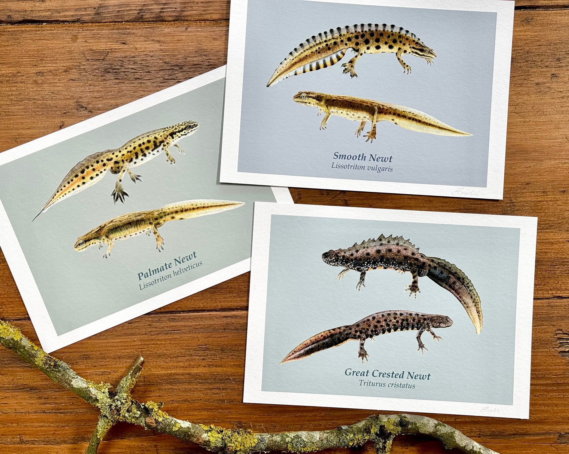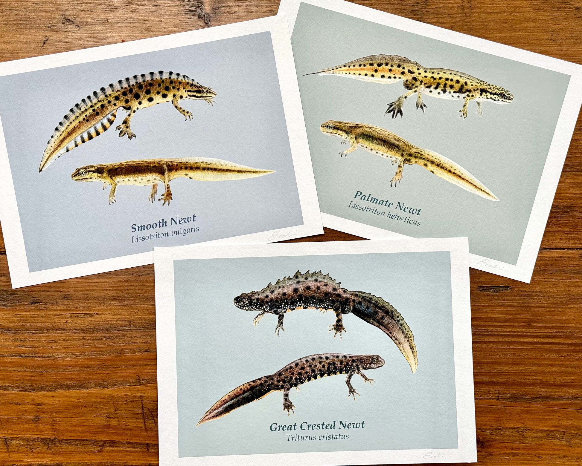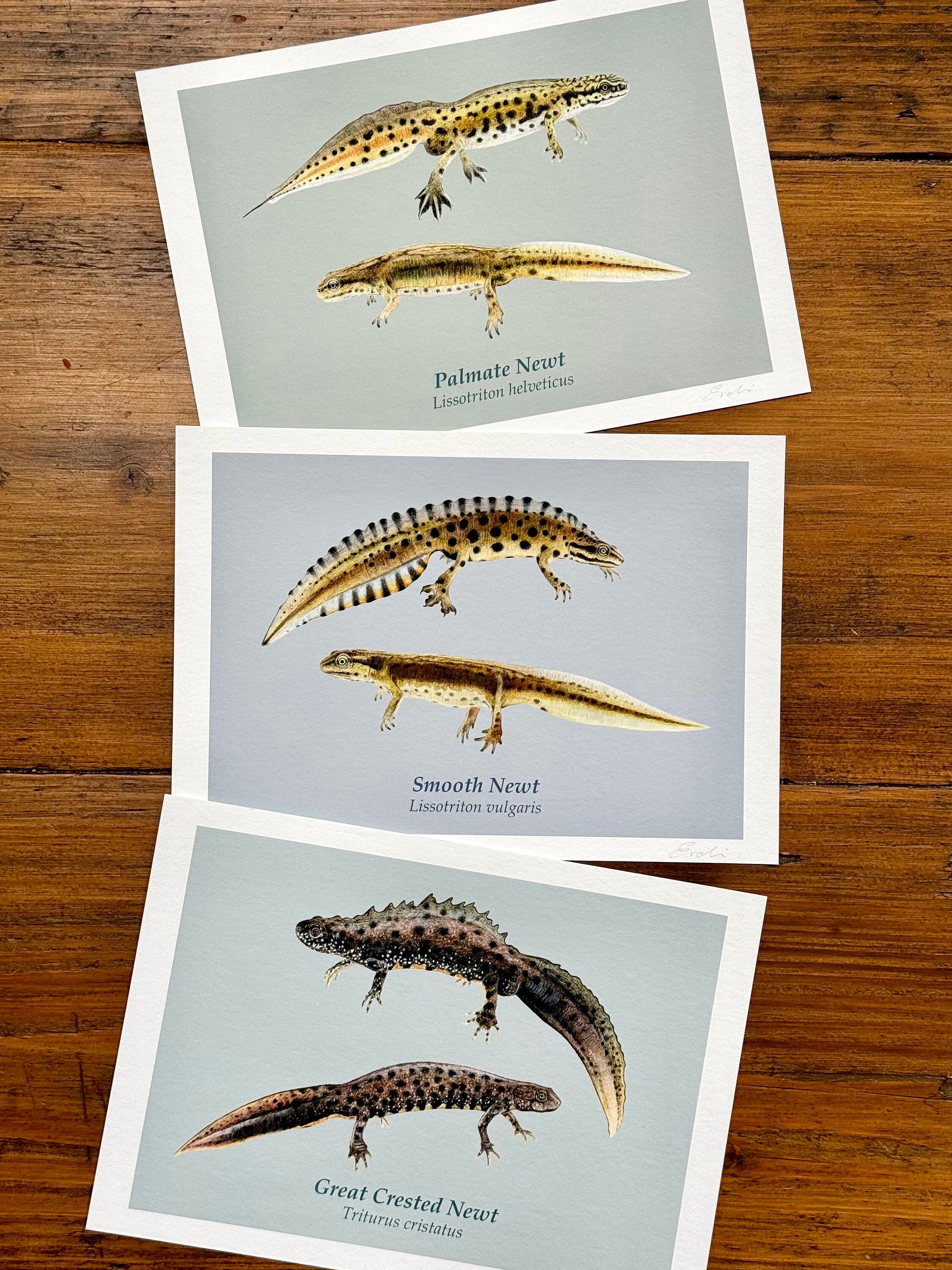 Sold as a set of three (one of each newt species) with or without the background colour. A4 and A5 versions available. Please note, only the colored background version has the label unless requested otherwise.