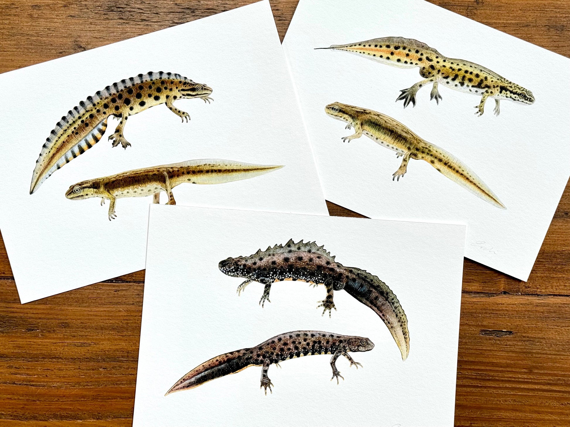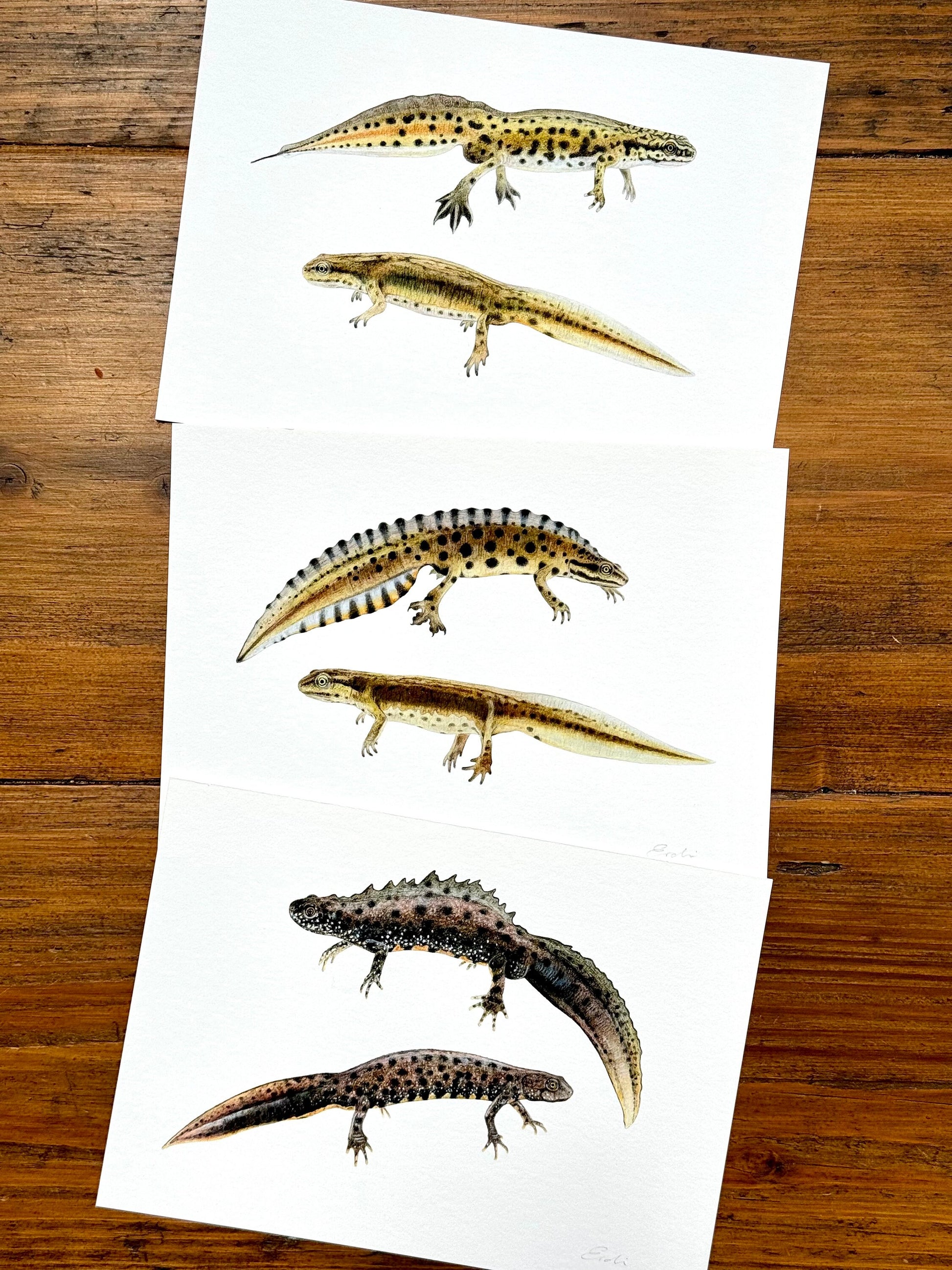 Set of three newt drawings - Giclée prints